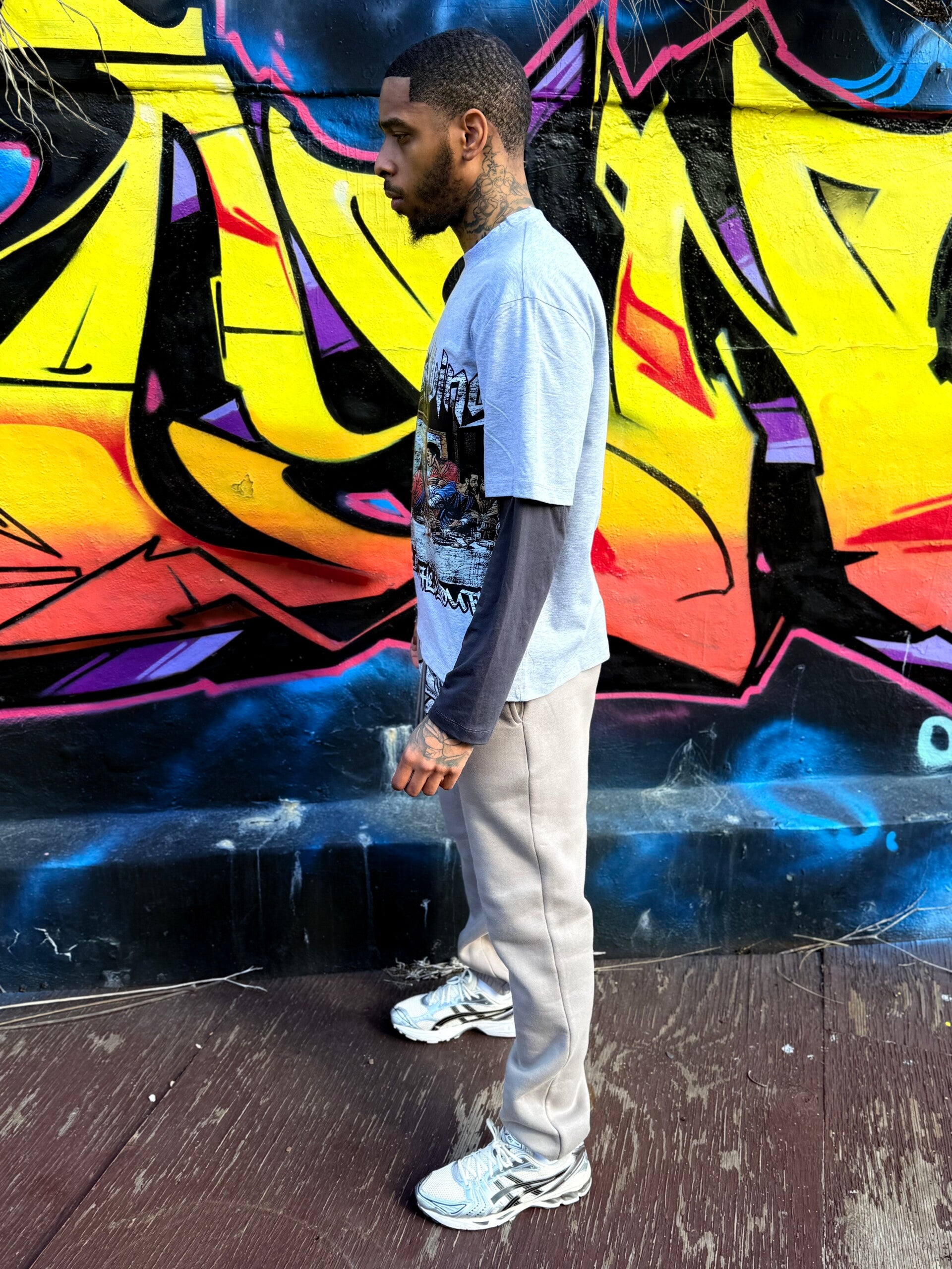 Double Sleeve Shirt With Gray on Dark Gray Sleeves. Last Supper DTF Print 100% Cotton